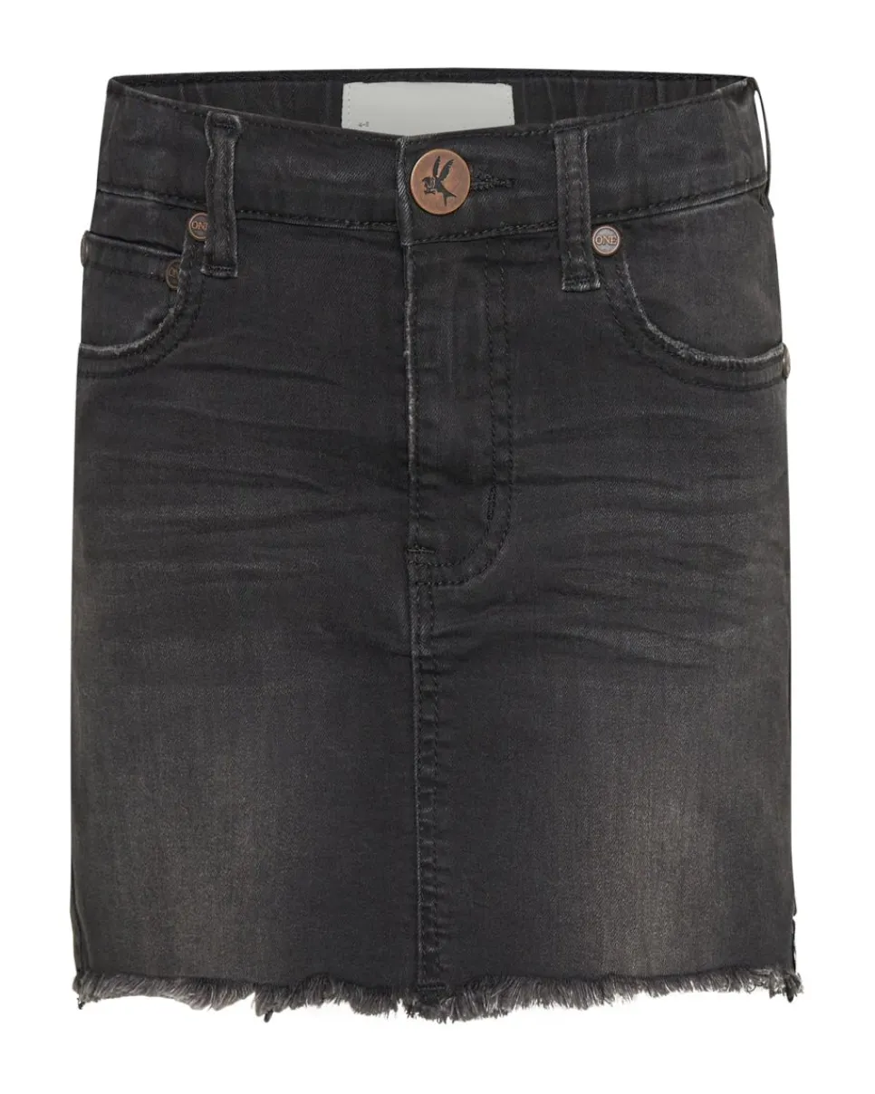 The Kids Black Punk 2020 Mini High Waist Denim Skirt. The Perfect Fitted Denim Mini Skirt. High Waisted And Fitted To The Hips. Classic 5 Pocket Details With A Raw Hem.