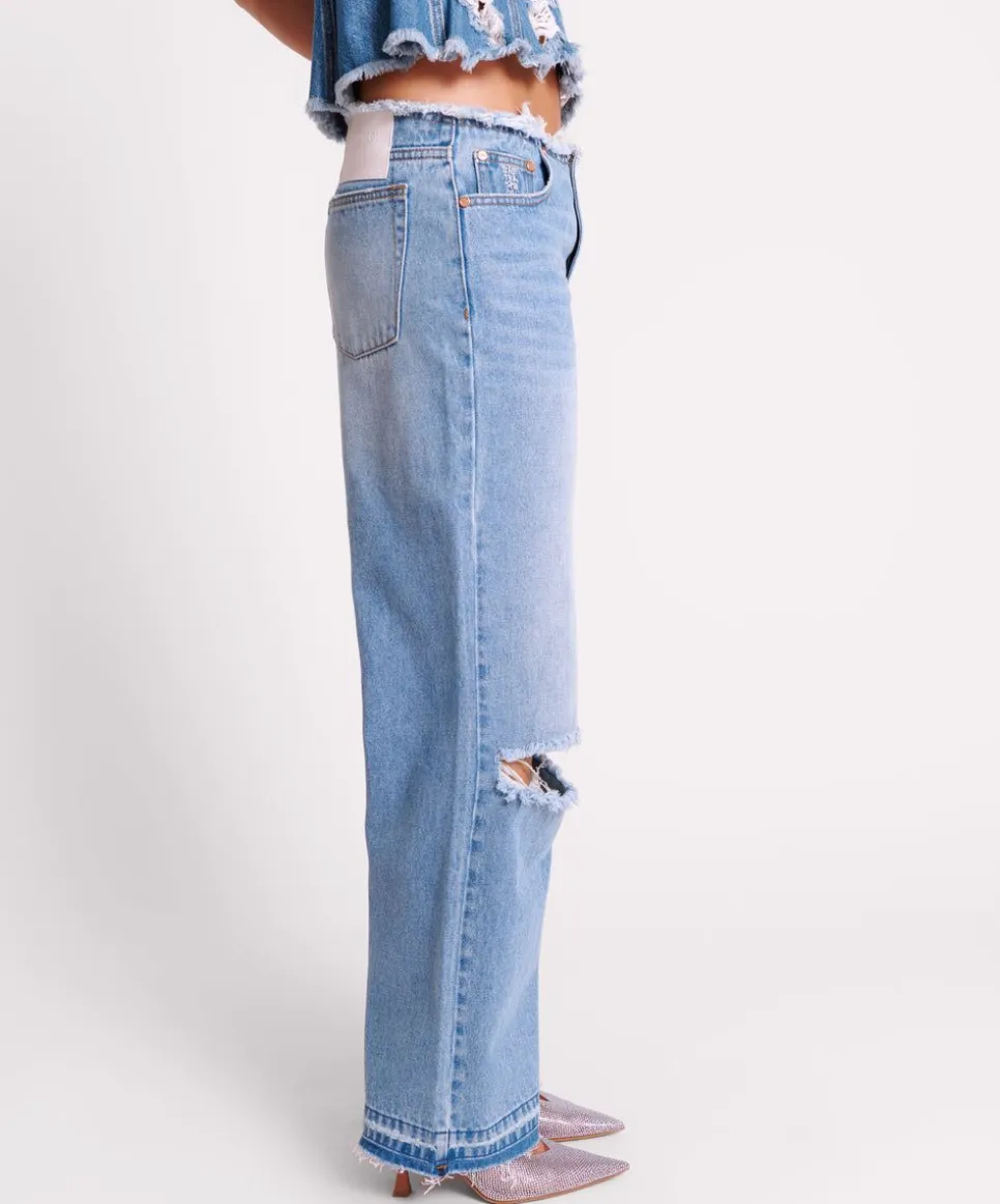Get Low, Low, Low With The Lowrider Wide Leg Jeans. Sit Lowwwwwww On The Waist And Wide Through The Hips And Legs. The Ultimate 90S Babe Denim Jeans Fit. Featuring A Raw Waist Band For Extra Edge.