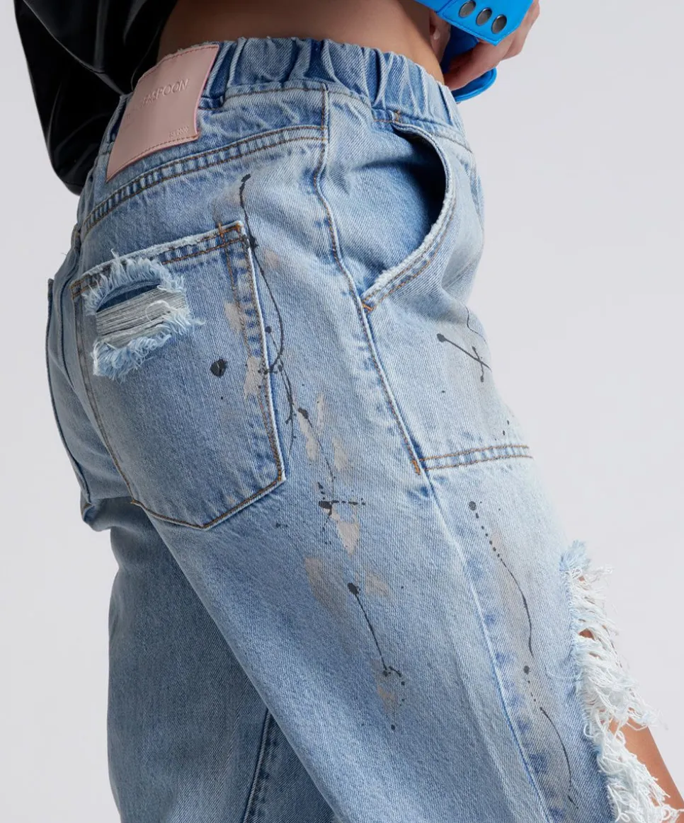 The Mid Waist Trackers Jogger Jeans. A New, Super Relaxed & Comfy Easy To Wear Boyfriend Jean. A Mid Waist & Slouchy Fit With An Elasticated Waist Band. This Is Our Answer To Denim Sweatpants. Your Essential Denim Lounge Pant Joggers. With Trashed & Ripped Distressing. Look Cool, Feel Comfy.