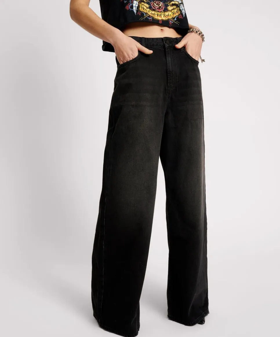 The Love Machines Mid Waist Super Wide Leg Denim Jeans. Our New 70S Studio 54 Disco-Inspired Silhouette – Super Wide Leg Denim Jeans That Sit At The Mid Waist For A Classic, Powerful Statement Fit. With A Zip Front Fly Closure And Featuring Distressed Denim Grinding At The Hem.