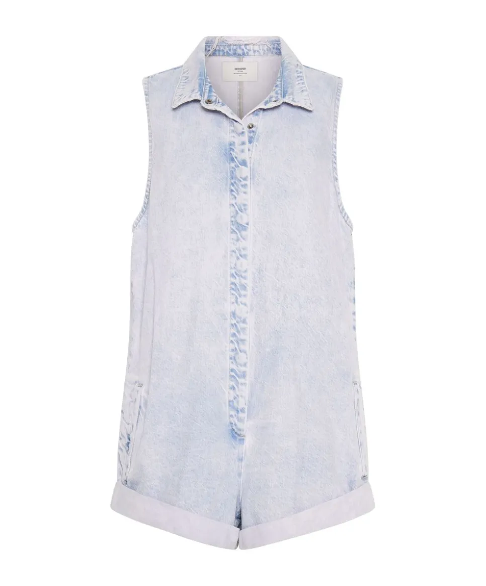 The Mini Braxton Overall. The Original Denim-Look Playsuit With A Utility Edge. Relaxed In Fit With Cut Away Arms And A Bandit Style Rolled Hem. Press Stud Closure. Fits True To Size.