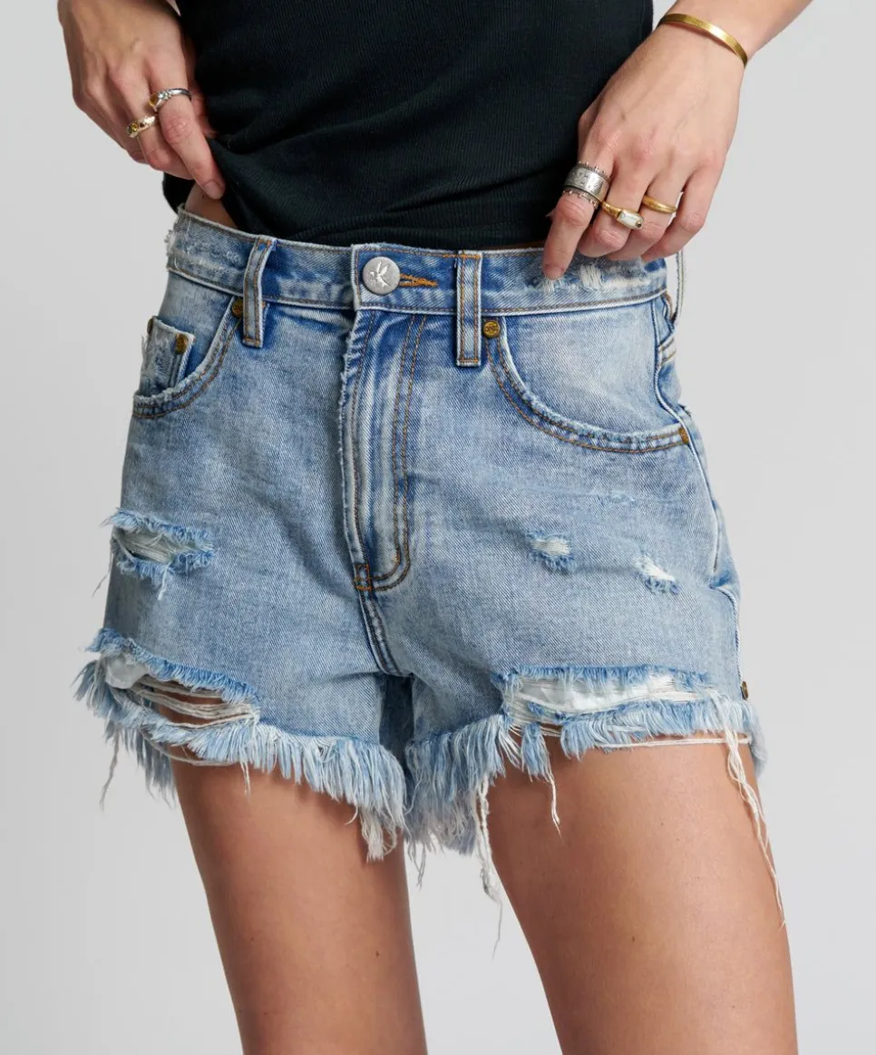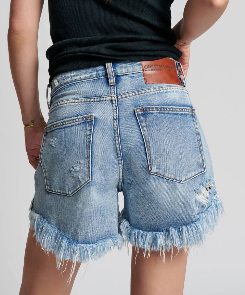 The Mid Waist Trucker Shorts. Mid Waist And Relaxed. Not Too Tight, Not Too Fitted. Just Right. Longer Length At The Back With A Flattering, Shape-Fitting Curved Hem Line, This Offers A Bit More Coverage Than Our Shorter Shorts. The Perfect In-Betweener.