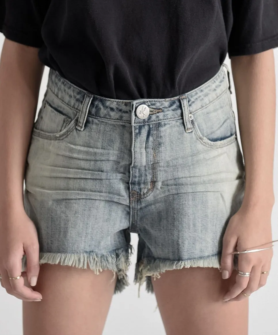 High Waist Hawks Are A High-Waisted, Snug Fit Denim Short. Classic 5 Pocket Style. Back Leg Panel Scoops Down At Mid Back Thigh.
