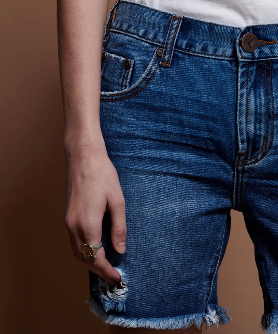 Stevies Are A Low Waist, Relaxed Boyfriend Style Short. Rigid Denim. Montana Is Our Blue Denim Wash. Model Wears A Size 26. Approx. Side Seam Length Inc. Waistband (Size 26): 38.5Cm. Machine Wash, Cold.