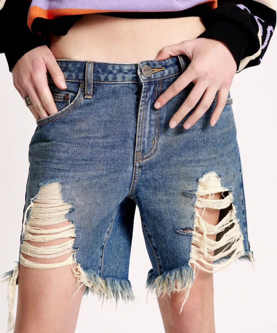 Stevies Are Our Slim Boyfriend Short. Your Go-To Longer Length Option – These Aren’T Too Baggy! Decent Amount Of Front Leg Panel Distressing So You Can Still Bare Some Leg!