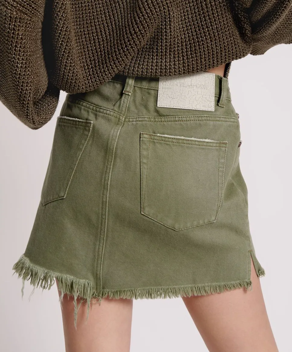 The 2020 Denim Mini Skirt. The Perfect Fitted Denim Mini Skirt. High Waisted And Fitted To Your Hips. Classic 5 Pocket Details With A Raw Hem. Wear It Smart Or Casual.