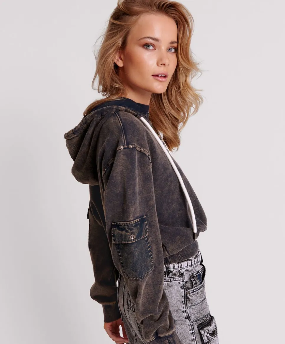It’S Always Adventure Time With The Ots Midnight Rust Cargo Studded Adventure Hoody. Relaxed, Slouchy And Sexy With The Gorgeous Darky And Moody Colour Way. Featuring Thumb Holes, Cargo Sleeving, Drawstring Hoody And Flat Studs At The Arm Holes And Base. Cropping At The Waist Elevates This Do-Anything Piece.