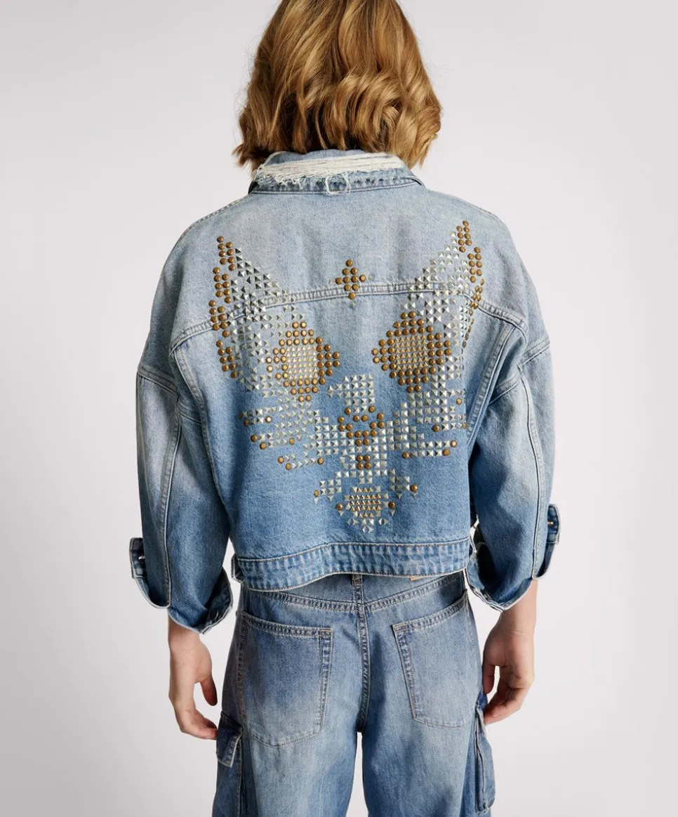 The Eagle Studded Cropped Denim Jacket Is A Classically Cut Cropped Denim Jacket With Distressing Throughout. Featuring Multi Studded Eagle On The Back.