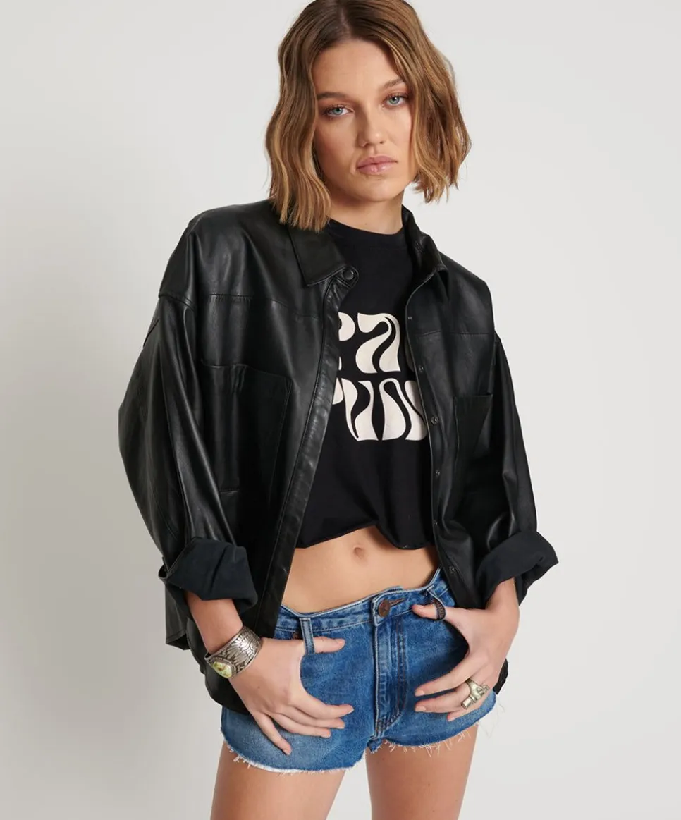 The Daria Shacket Is Our Super Oversized Denim Shirt-Jacket With Batwing Sleeves, Huge Pockets & A Curved Hem Line. Looks Great With The Sleeves Rolled And Pushed Up. Can Be Sized Down For A Smaller Look – But We Love It Just The Way It Is.