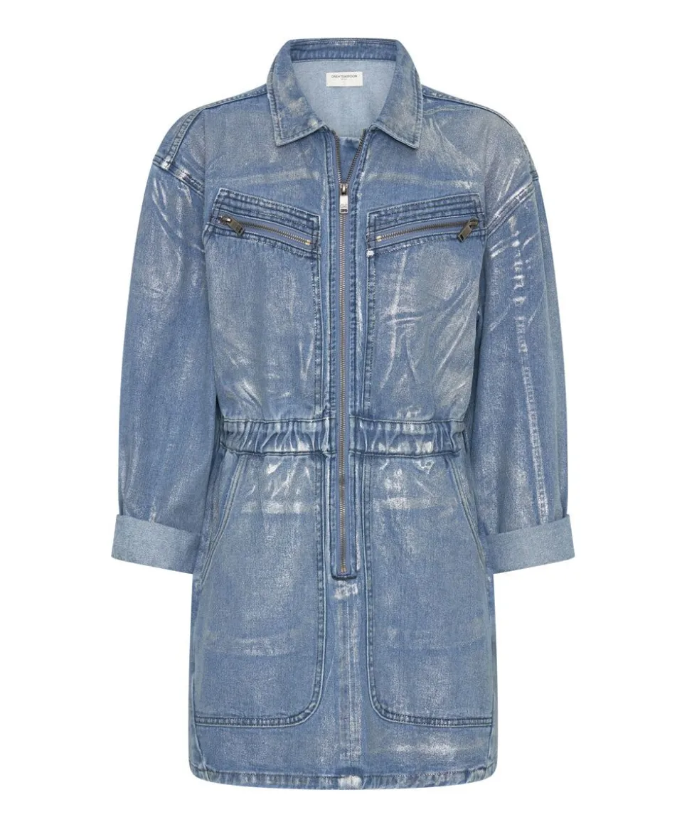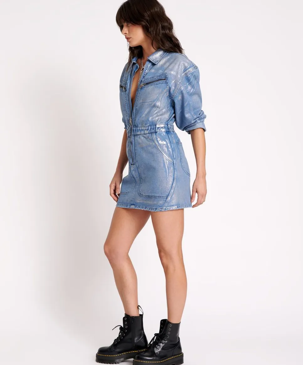 Blue Future Is Our New Light Weight Fresh Blue Denim Wash Featuring A Metallic Silver Coating.