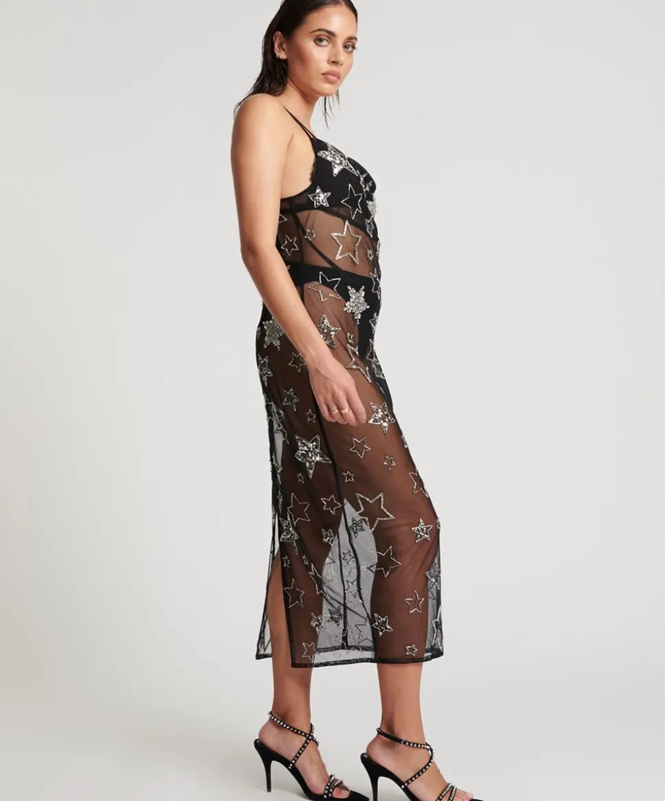 Forever Stellar In The Stellar All Star Hand Beaded Slip Dress. Sheer, Slinky And Sensual, Stellar Features Cowl Neck Adjustable Straps With Centre Back Zipping And Embellished Stars.
