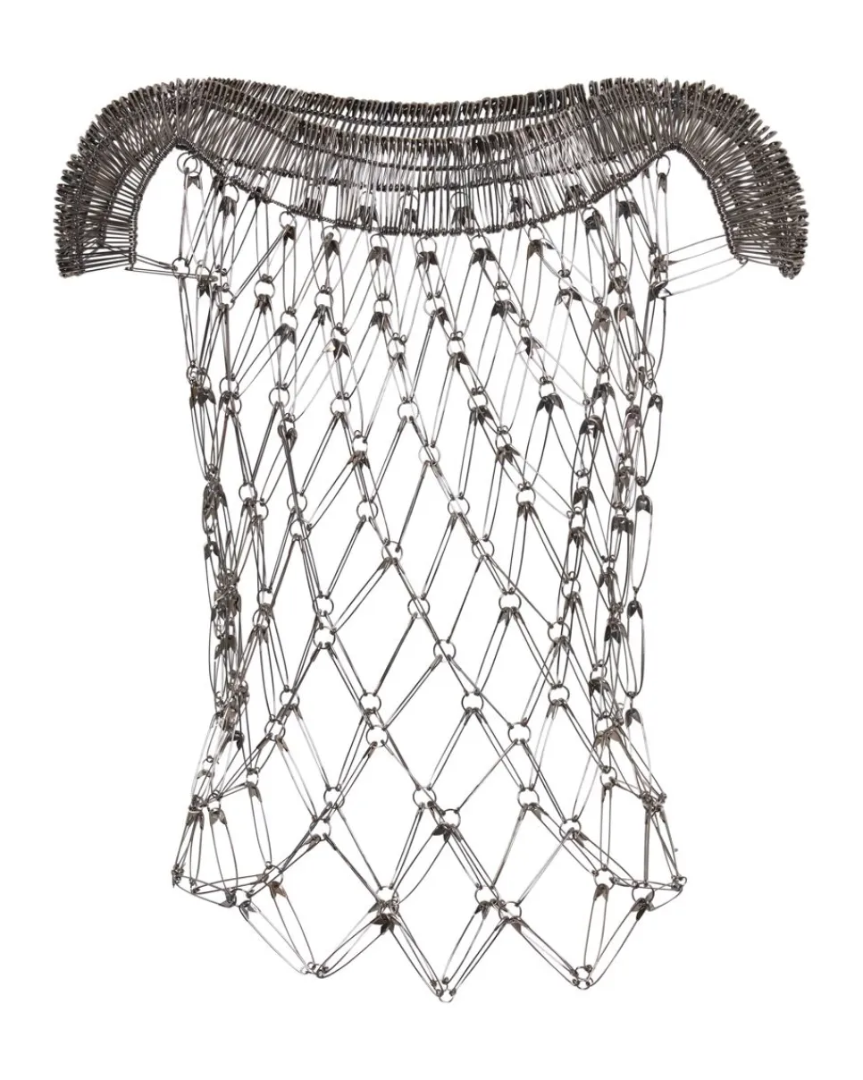 Chain-Look Top Crafted From Gun Metal Safety Pins For A Fierce But Feminine Look.