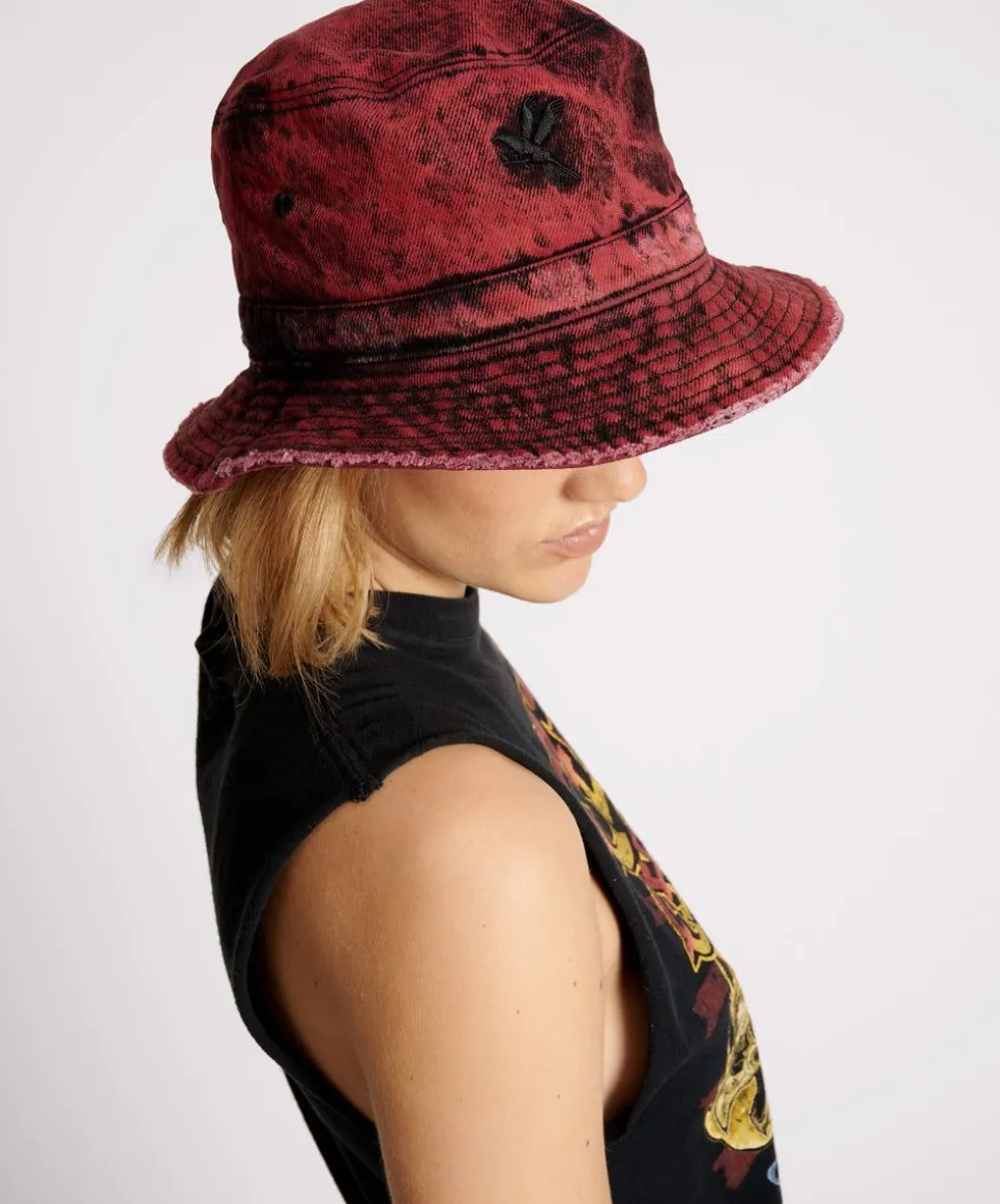 The Black Heart Denim Bucket Hat. Classic 90S Vibes. In Our Brand New Limited Edition Black Heart Denim Wash – A Luxe Black Denim Original Base, Then Acid Washed And Over-Dyed Red.