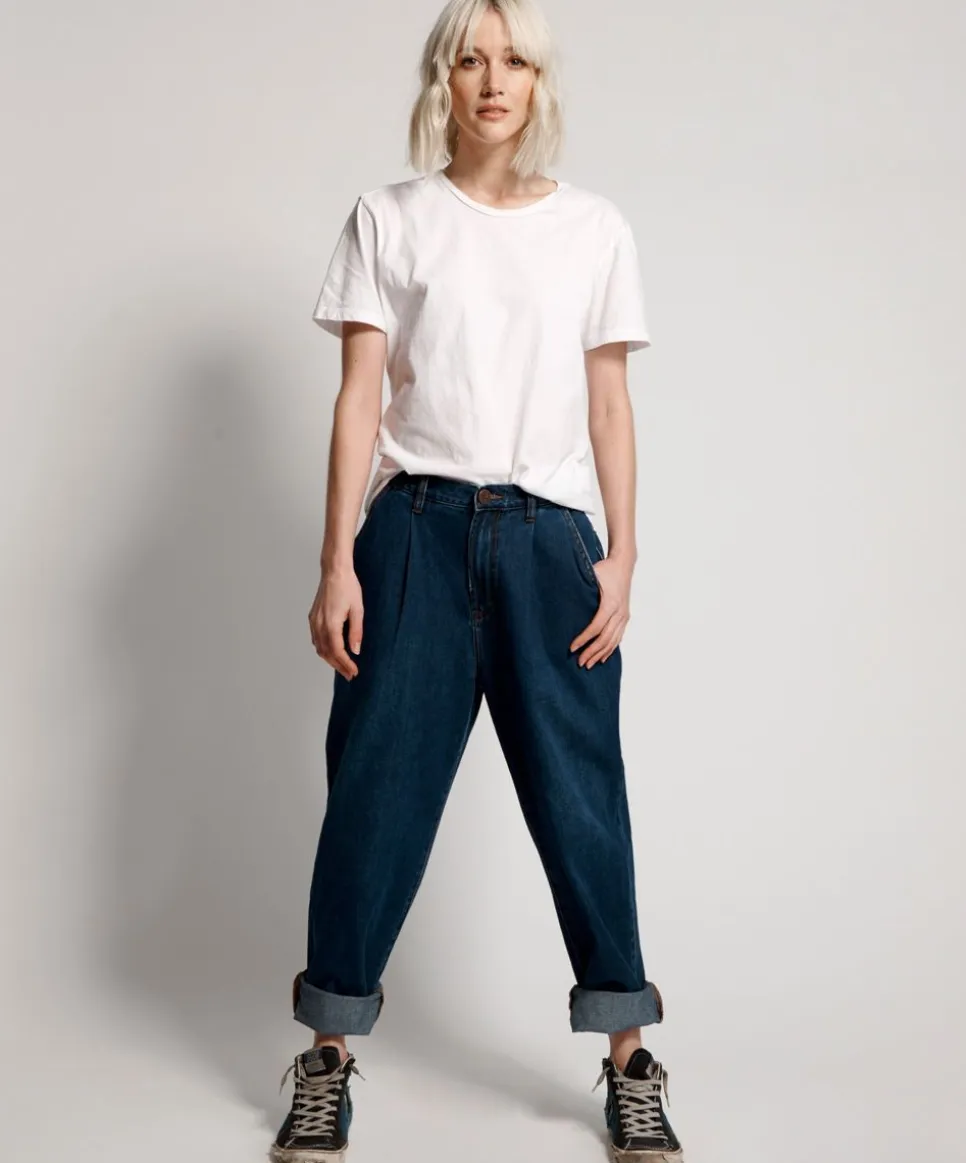 High Waist Smiths Are A Vintage 80S Inspired Relaxed Fit Denim Jean. Wide Leg Design. Bluemoon Is A Deep Indigo Denim Wash. Made From 100% Cotton. Approx. Side Seam Length Including Waistband (Size 26): 102Cm. Machine Wash Cold. Model Is Wearing A 26. See The ‘Drop Waist’ Measurement In The Size Chart To Determine Your Size.