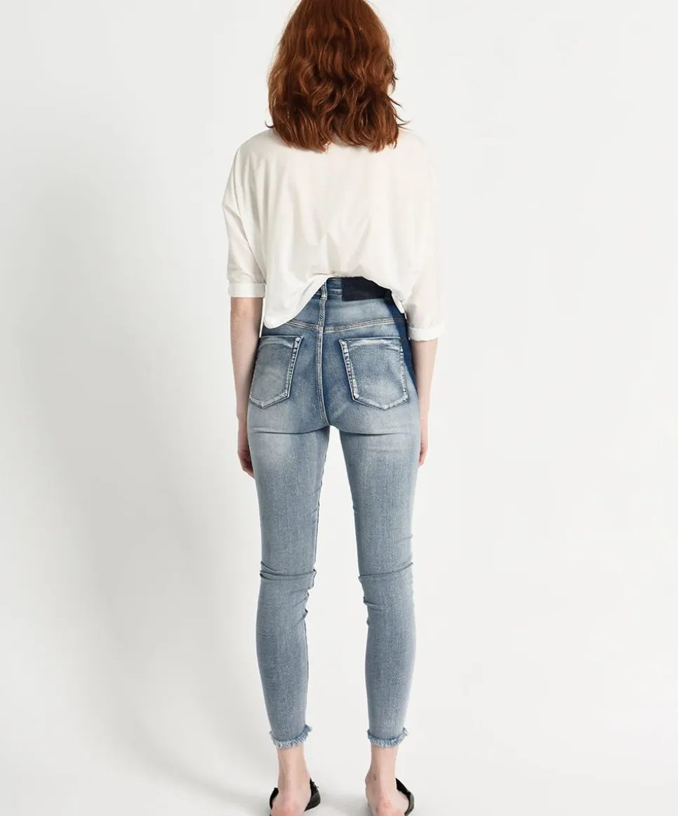 Super High Waist Freebirds Ii Are A Super High-Waist, Skinny Fit Stretch Denim Jean. Two Tone Blue Wash. Slightly Cropped Length And Raw Ankle Hem.
