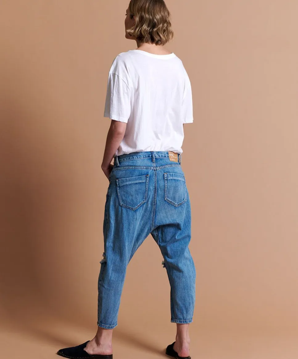 - Slouchy Low Waist Drop Rise Drop Crotch Tapered Leg Jean