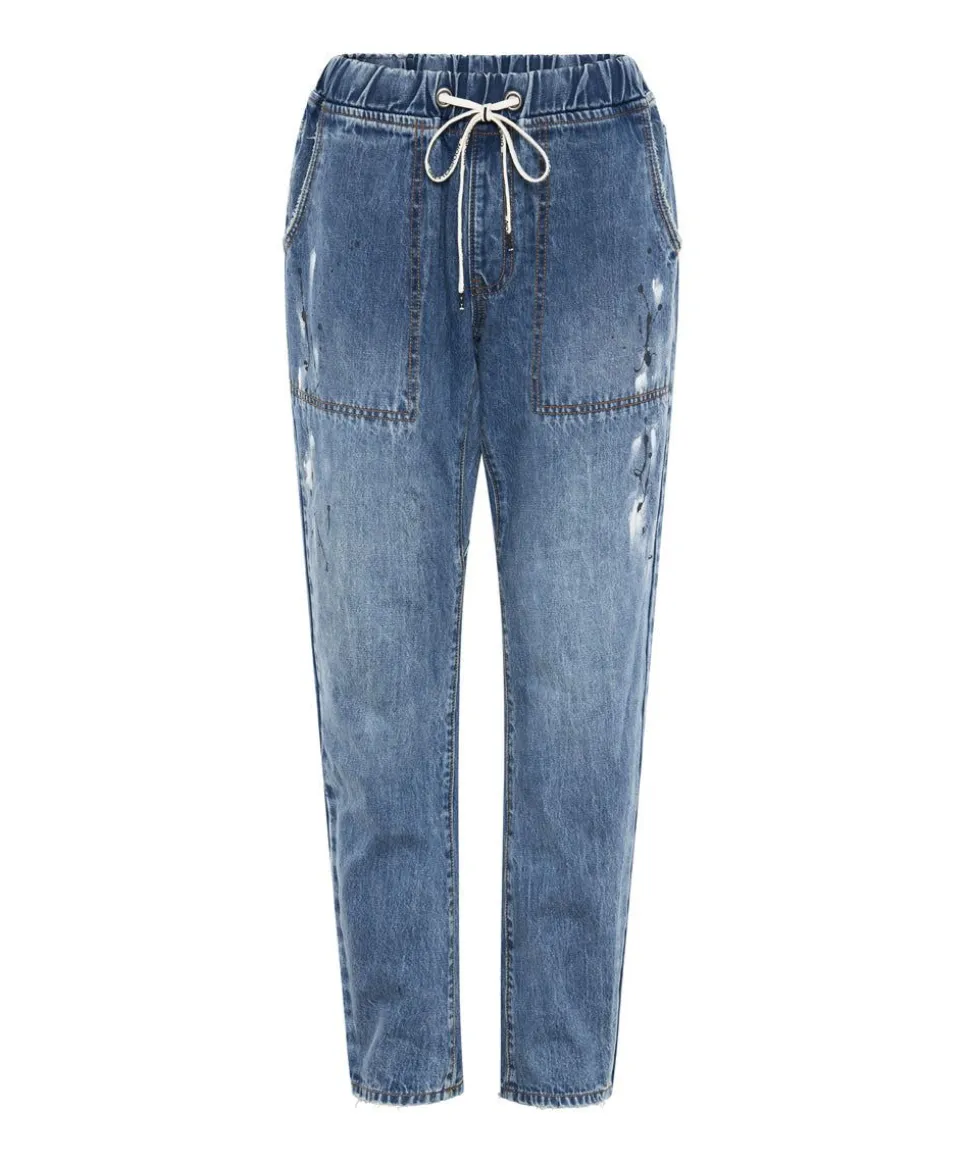 The Shabbies Drawstring Boyfriend Jeans Are A Perfect Easy To Wear Boyfriend Jean. A Low Waist Slouchy Fit With An Elasticated Drawcord Waistband. Added Gusset Detail At The Crotch Point For An Extra Sloutchy Feel. Large Cargo Patch Pockets On The Front For Some Extra Utility Details. This Is Our Answer To A Denim Jogger. Your Essential Denim Lounge Pant.