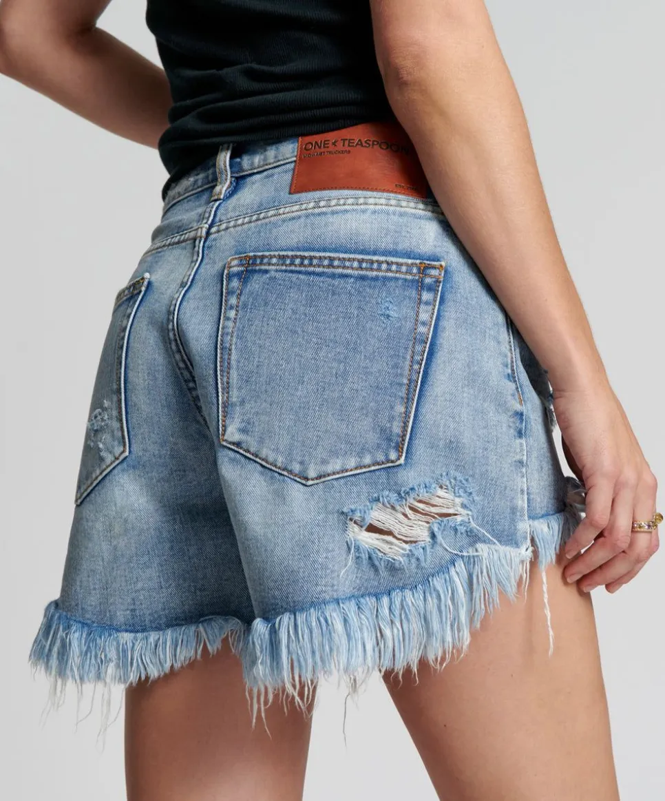The Mid Waist Trucker Shorts. Mid Waist And Relaxed. Not Too Tight, Not Too Fitted. Just Right. Longer Length At The Back With A Flattering, Shape-Fitting Curved Hem Line, This Offers A Bit More Coverage Than Our Shorter Shorts. The Perfect In-Betweener.
