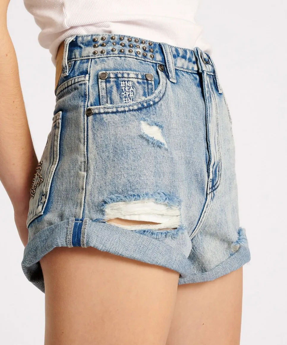 The High Waist Bandits. Our Cult Classic Denim Shorts, But High Waisted! Semi Relaxed In Fit. Fitted Around The Waist And Slouchy Through The Hip. Slouchy In All The Right Places And Includes Our Bower Bird Button And Signature Hem, Rolled And Twisted – Just Like A Bandit. Designed To Fit At The Small Highest Part Of Your Waist.