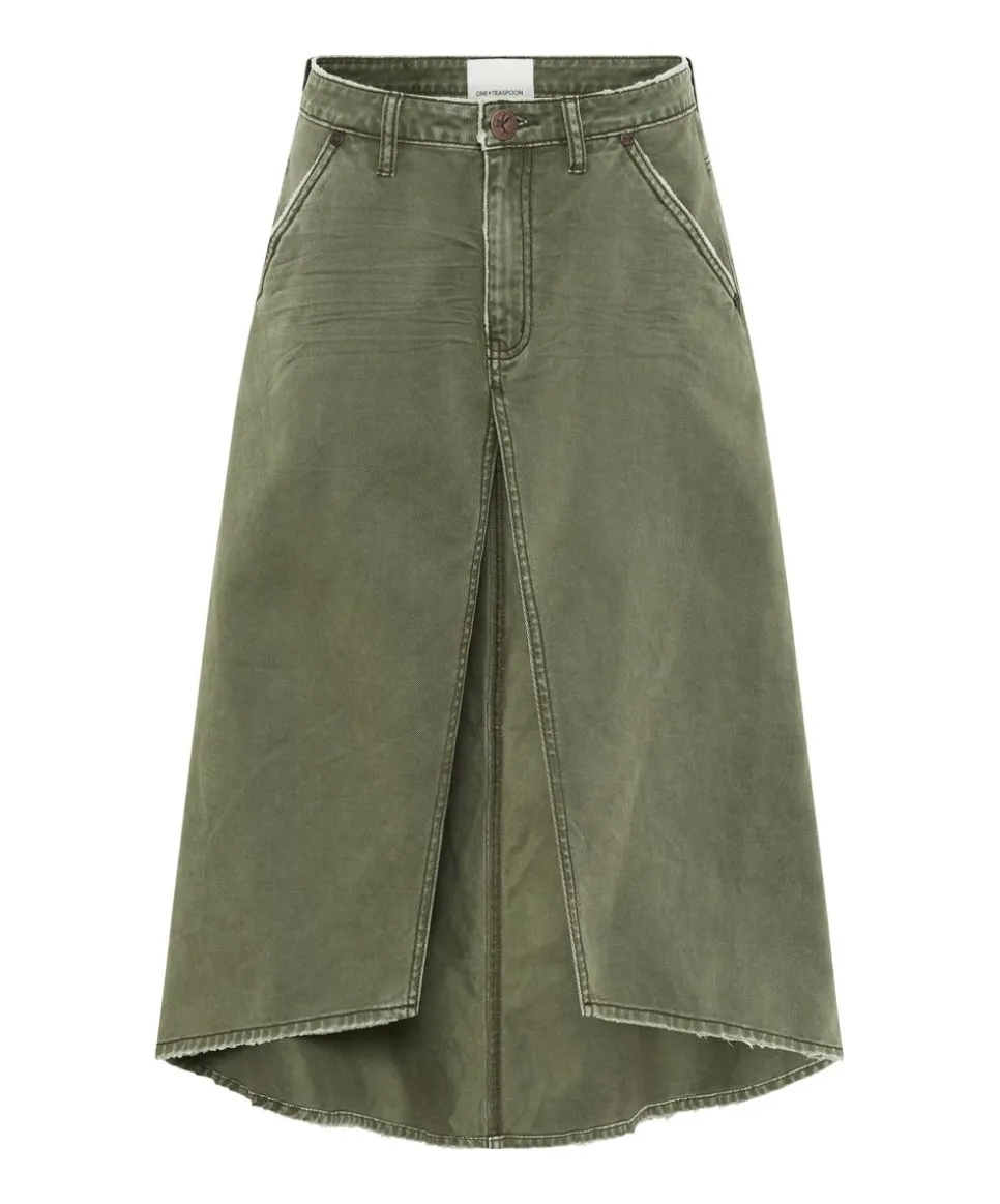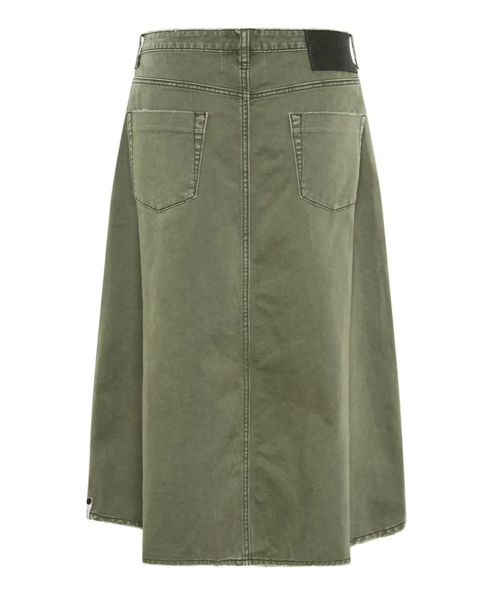 Mrs Carter Is A Low-Waist, Loose Fit, Full Length Denim Skirt. Front Split. Rigid Denim. Signature Bird Button Closure.