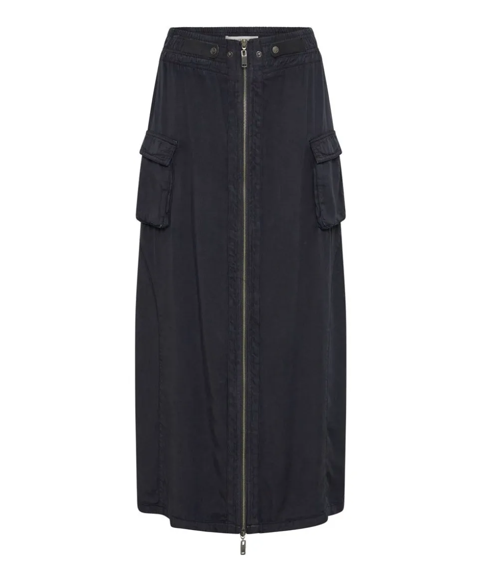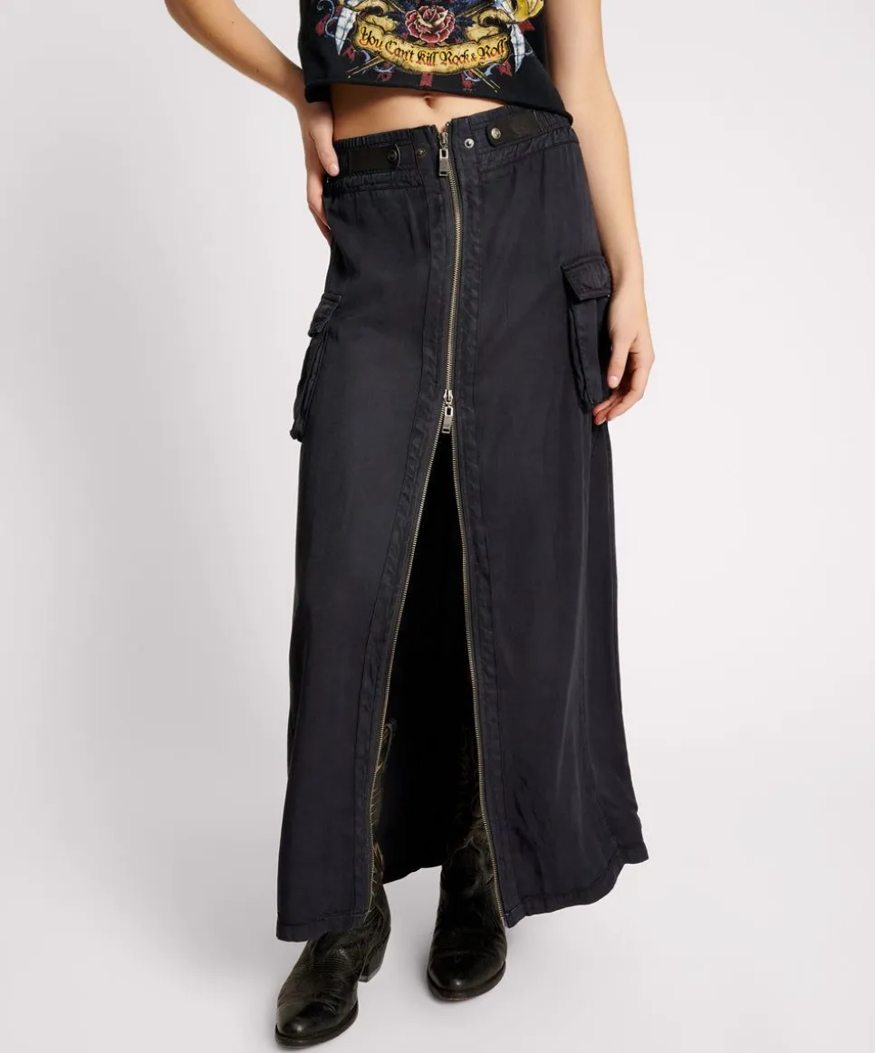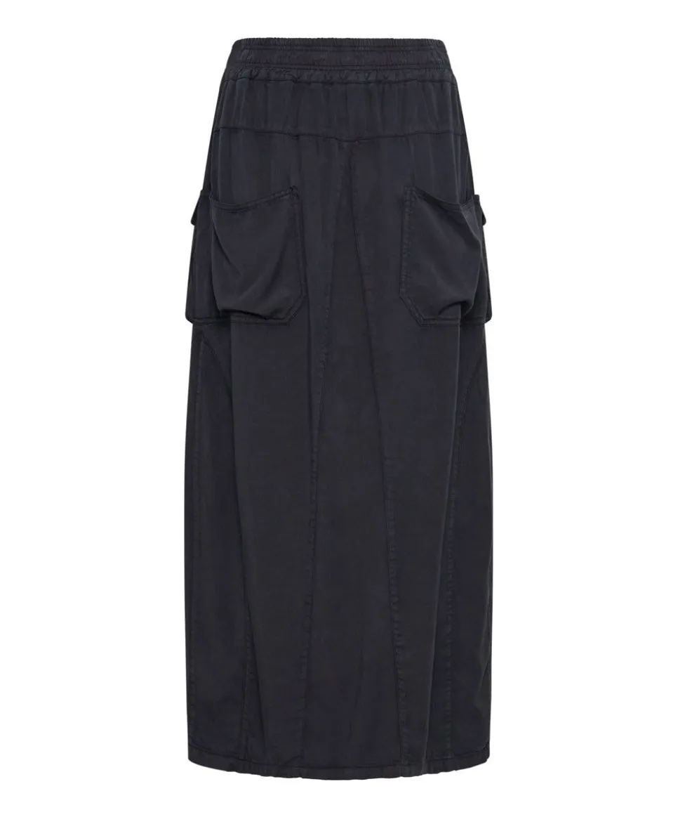 Introducing The Washed Black Tencel Parachute Skirt. A 90S Inspired Statement Skirt. Low Waisted With A Relaxed And Loose Fit. Featuring Large Utility Pockets, Adjustable Waist Tabs And An Elasticated Waist.