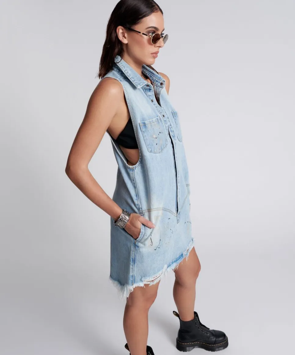 The Best Blue Mini Braxton Dress – The Short Denim Dress With The Utility Edge. Relaxed In Fit With Cut Away Arms And Hems. The Ultimate Ask-No-Questions, Take-No-Prisoners Utility Dress.