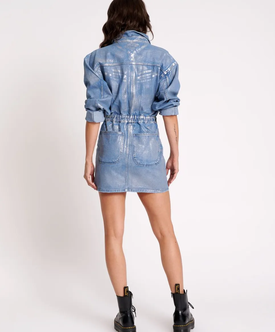Blue Future Is Our New Light Weight Fresh Blue Denim Wash Featuring A Metallic Silver Coating.