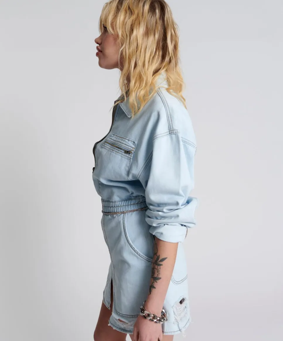 Utilitarian, Versatile & Still Sexy A.F. The Olivia Dress. Perfectly Fitted With A Rouched, Elasticated Fitted Waist And Sexy Long Front Adjustable Zip. Collared, Slimline, Chic & Adjustable – Wear It Your Way. Roomy Hidden Side Pockets.