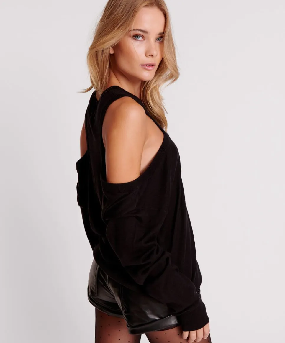 The Black Cold Shoulder Slouch Long Sleeve Knit Top Is A Slightly Oversized Loose Fitting Lightweight Knit. Featuring A Crew Neck, Rib Cuffs And Thumb Holes In Classic Black.